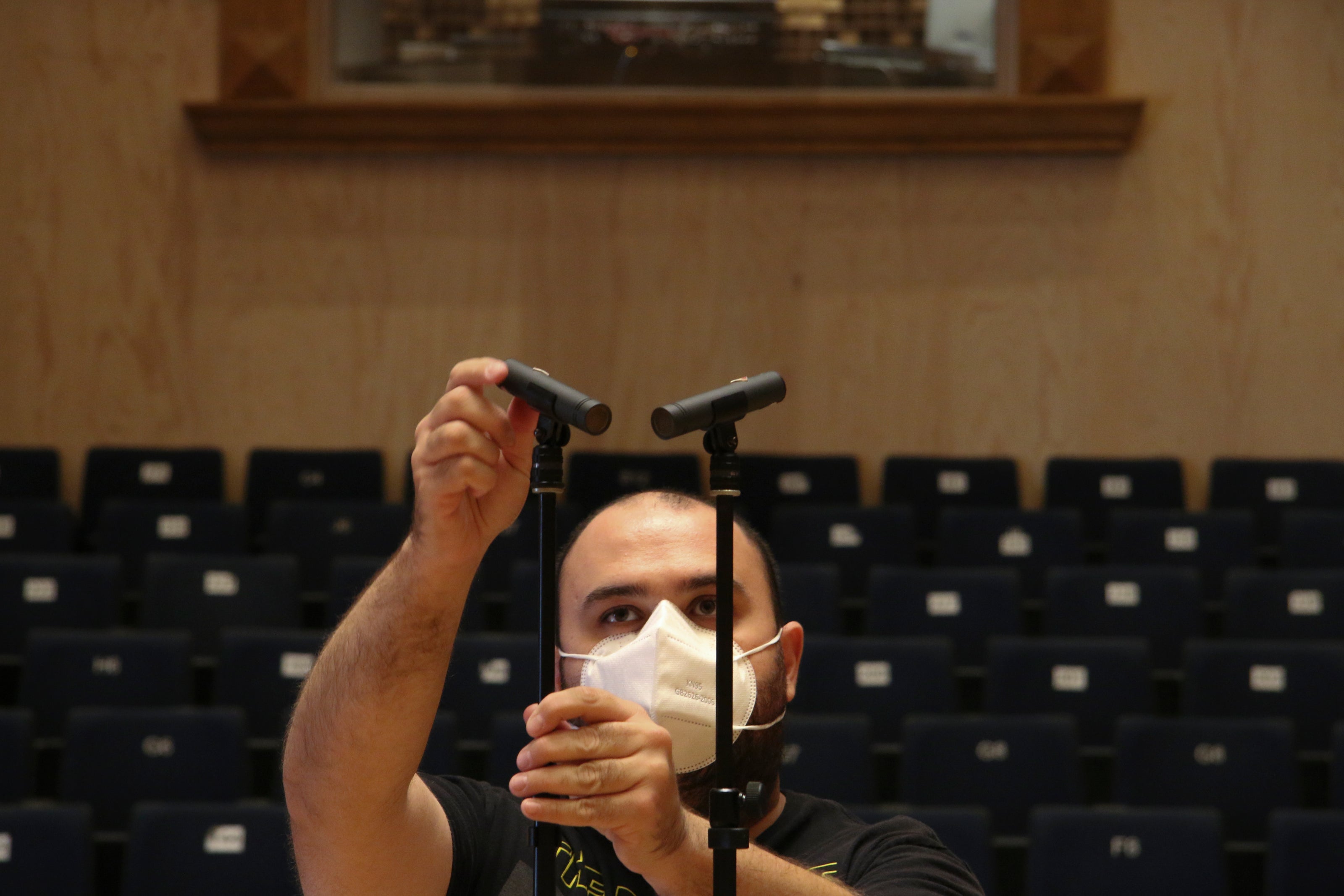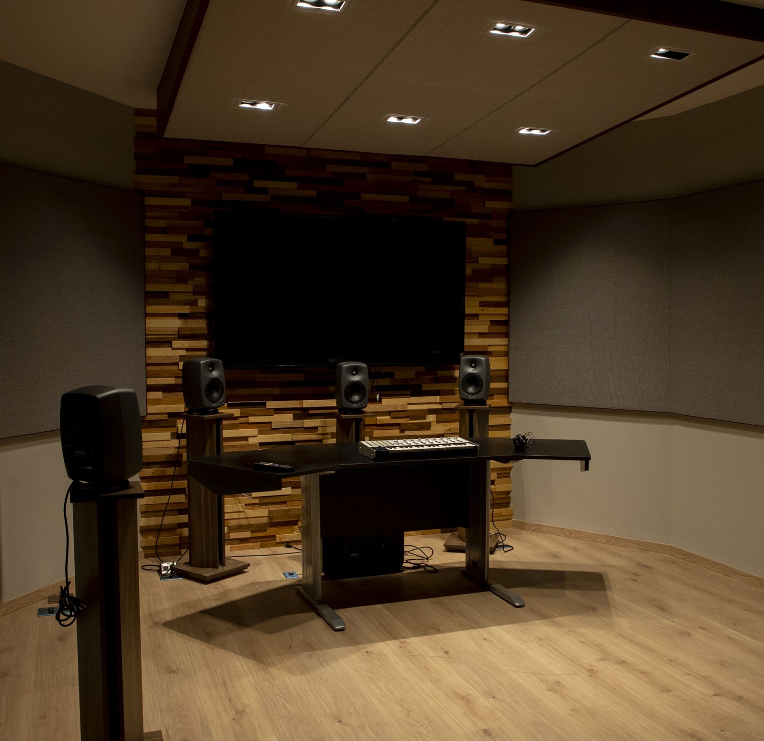 Cabina de grabación mide 20.60 mts2, cuenta con ventana acústica de aislamiento de 2.4 mts.